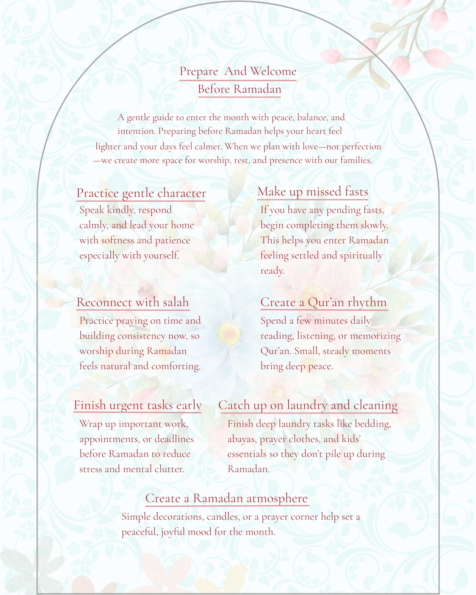 May this planner help you enter Ramadan with clarity, live it with presence, and leave it with a transformed heart